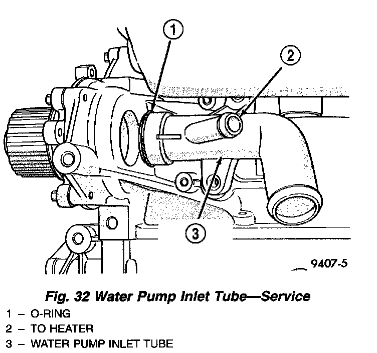 4. Connect lower radiator hose and heater hose to inlet tube.