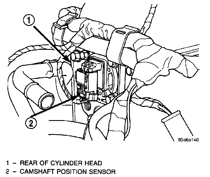 The camshaft position sensor is mounted to the rear of the cylinder head.