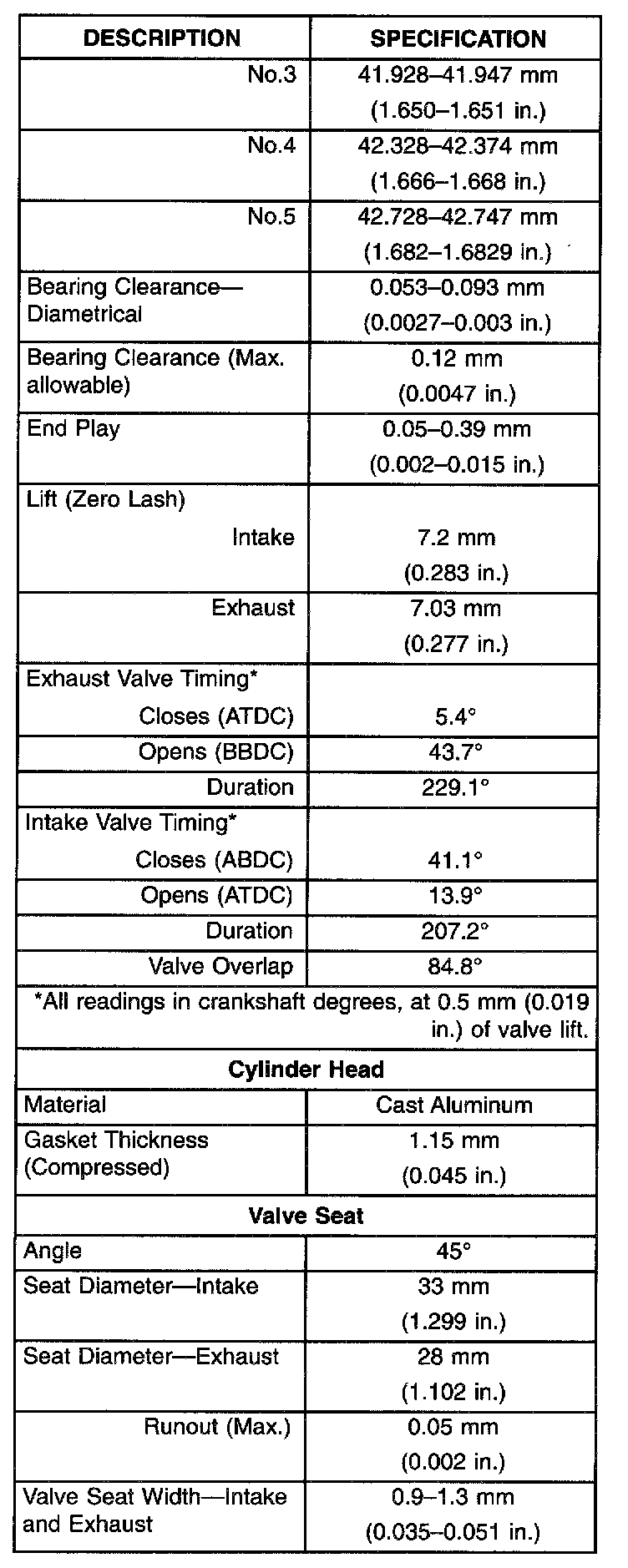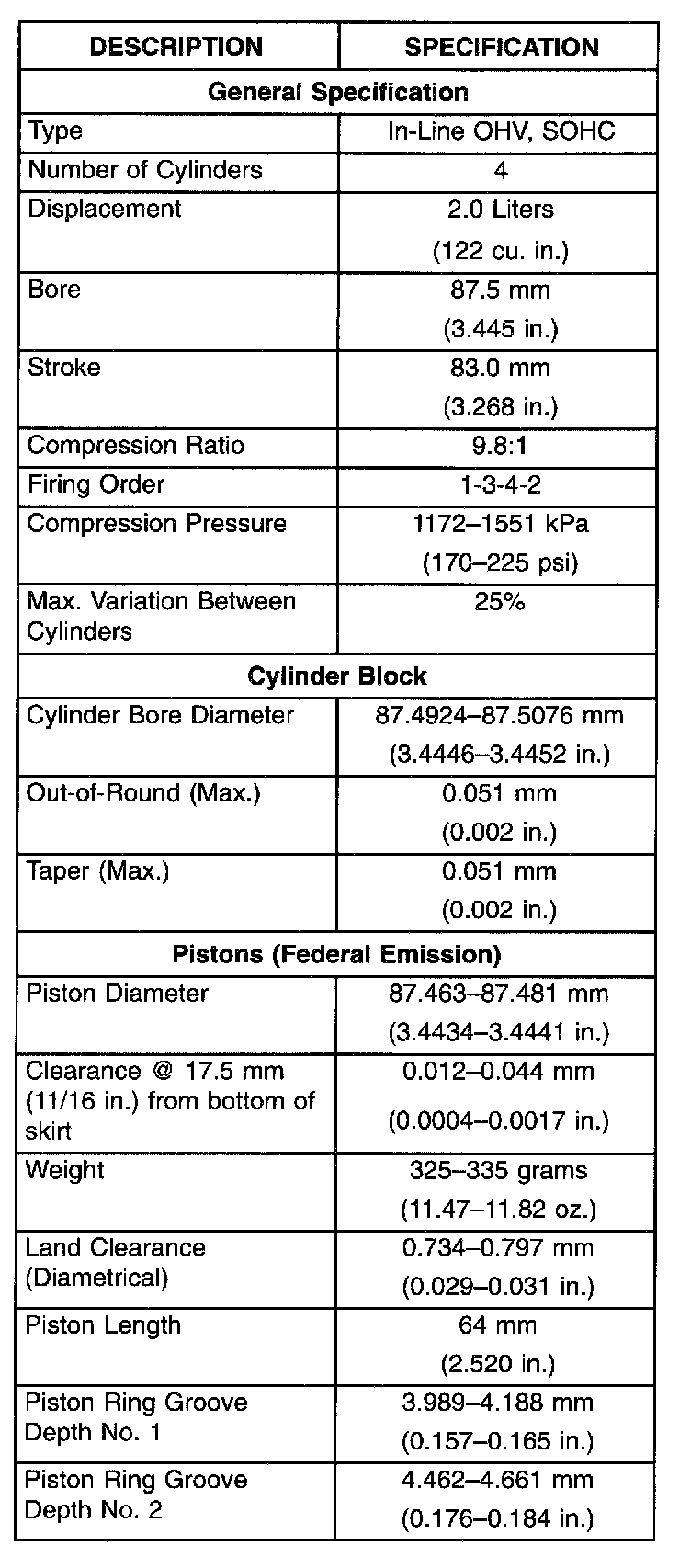 Engine Specifications