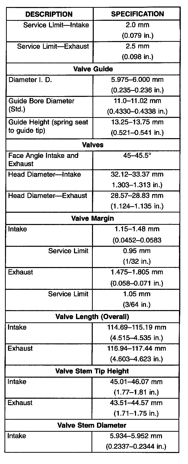 Torque Specifications