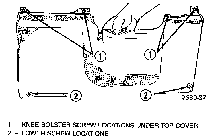 5. Pull instrument panel top cover up enough to gain access to knee bolster screws.