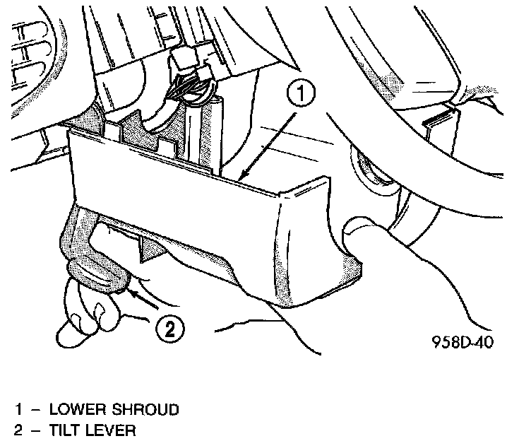 9. Hold tilt wheel lever down and slide lower shroud forward to remove it from column.