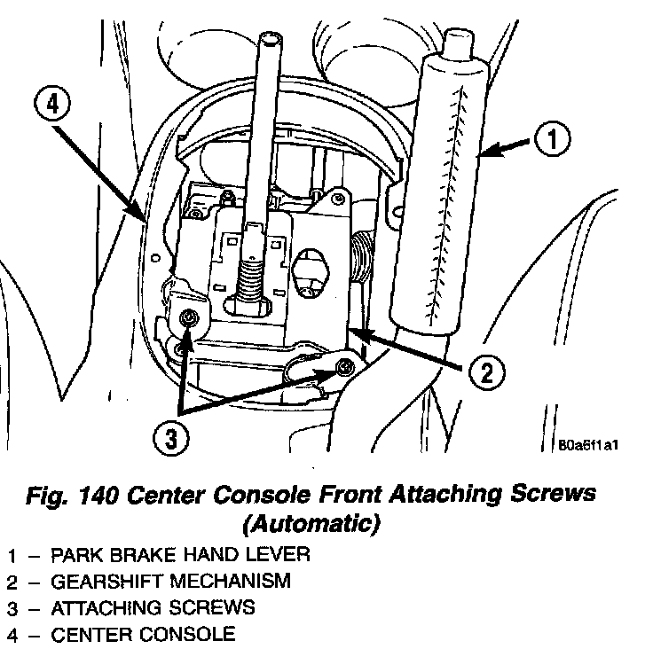 5. Raise park brake hand lever to the mid-position of its travel. This will allow for the required clearance to remove center console.