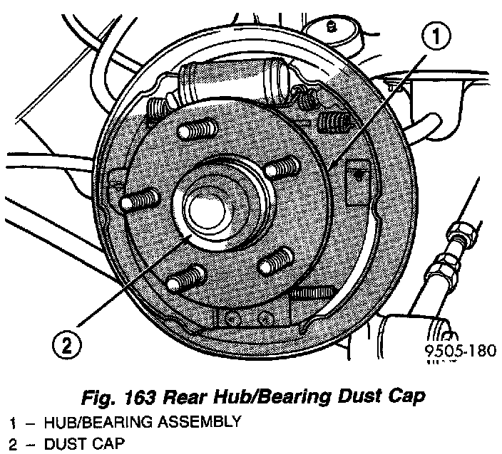 18. Remove dust cap from rear hub/ bearing assembly.