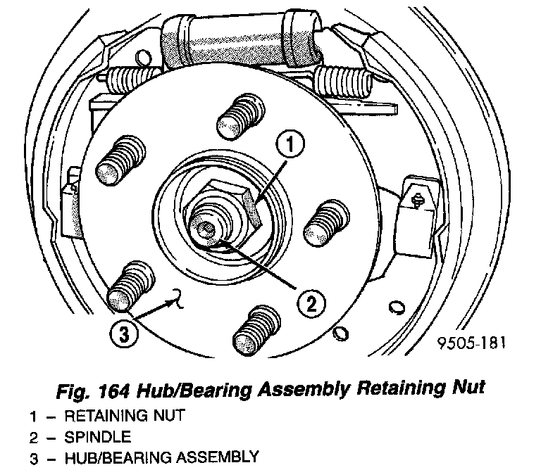 19. Remove the rear hub/bearing assembly retaining nut.