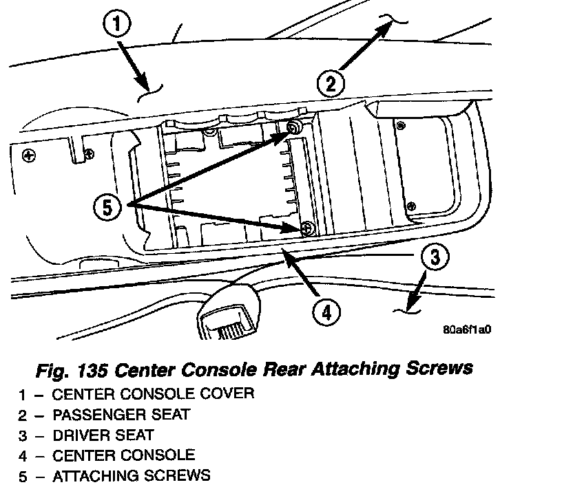 1. Remove the 2 screws attaching rear of center console assembly to console bracket.
