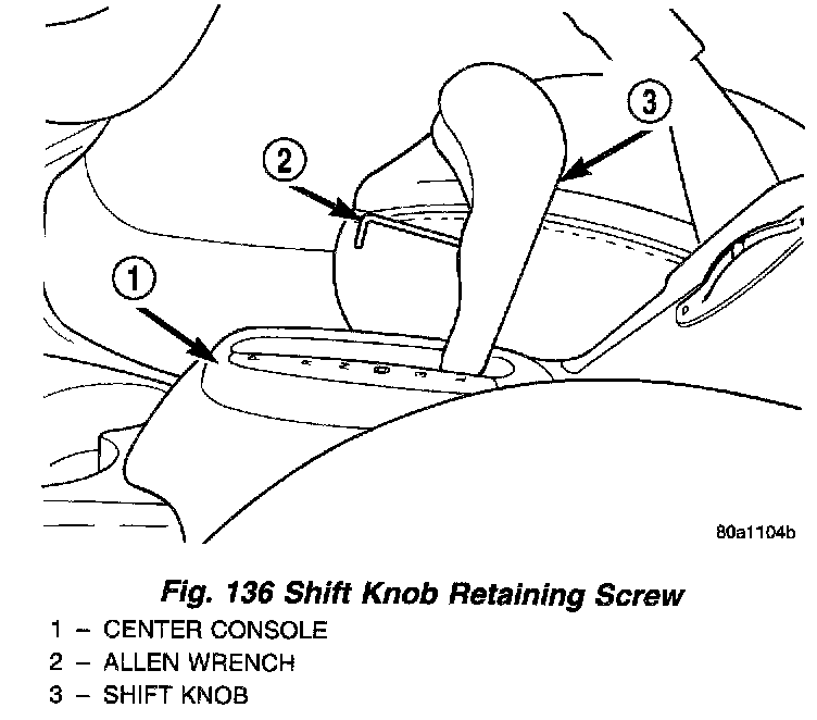 2. If vehicle is equipped with an automatic transmission remove the shift knob from the shifter. The gear shift knob is attached to the shifter using a set screw. Access to the set screw is from the front of the shift knob and is removed using a 2 mm alien wrench.