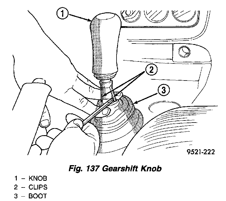 3. If the vehicle is equipped with a manual transmission remove the gearshift knob and shifter boot using the following procedure.
