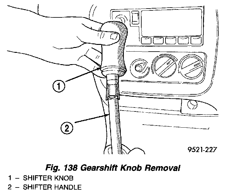 ^ Remove the shifter knob from the shifter handle, by pulling the shifter knob straight up.