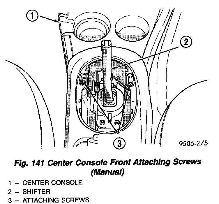 4. Remove the 2 screws attaching the front of the center console to the gear selector or shifter.