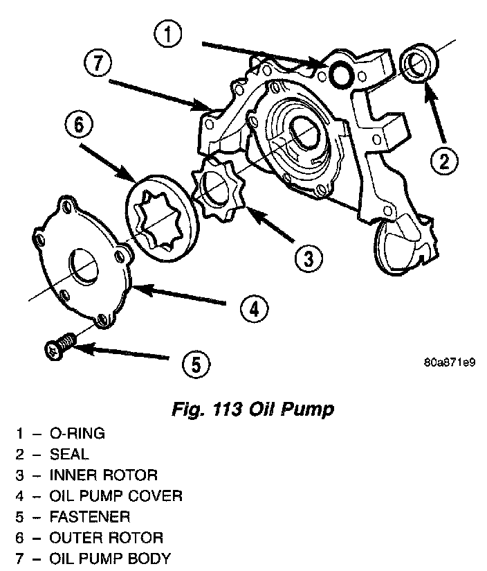 1. Clean all parts thoroughly. Mating surface of the oil pump should be smooth. Replace pump cover if scratched or grooved (Fig. 113).