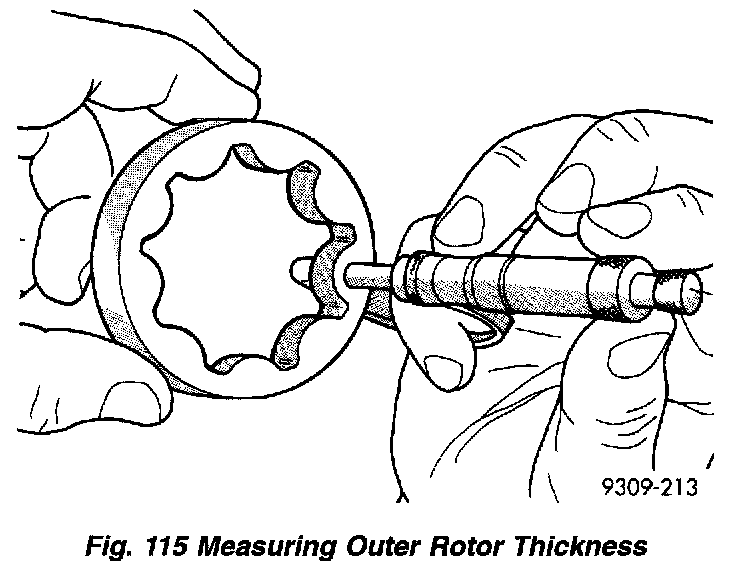 3. Measure thickness and diameter of outer rotor. If outer rotor thickness measures 9.40 mm (0.370 inch) or less, or if the diameter is 79.95 mm (3.148 inch) or less, replace outer rotor (Fig. 115.