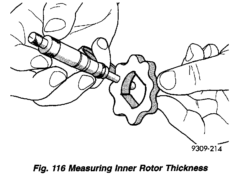 4. If inner rotor measures 9.40 mm (0.370 inch) or less replace inner rotor (Fig. 116).