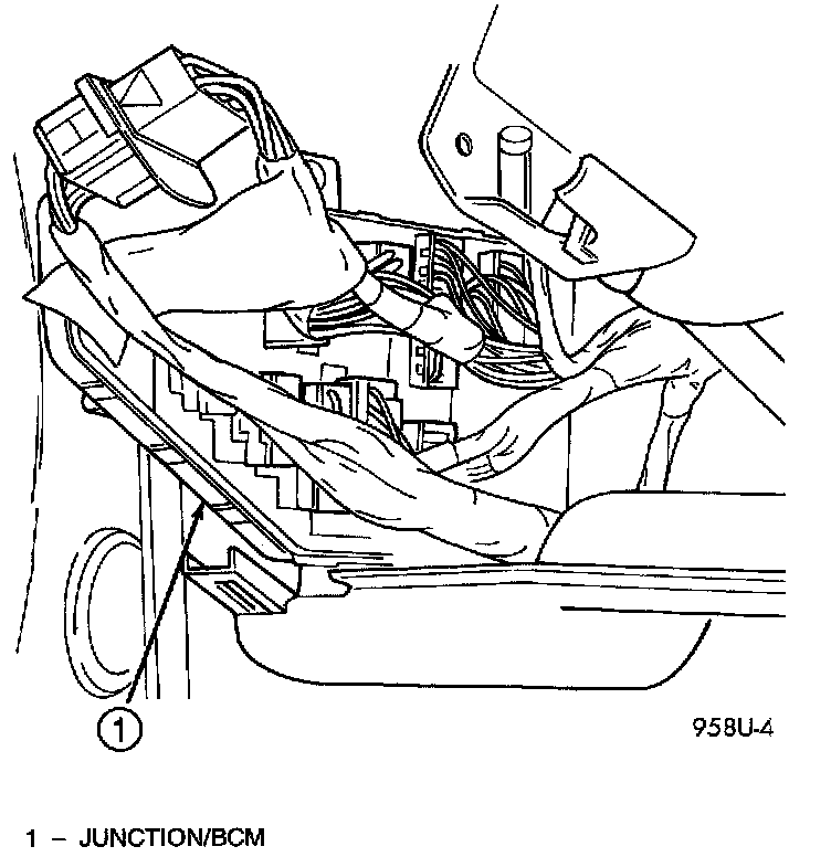 The Junction Block (JB) and Body Control Module (BCM) are attached to each other. After removal they can be separated. Junction Block and Body Control Module assemblies are located on the driver's side of the vehicle.