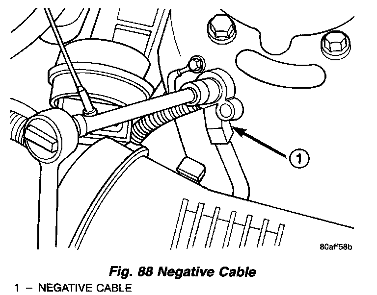 1. Disconnect battery negative cable at left strut tower (Fig. 88).