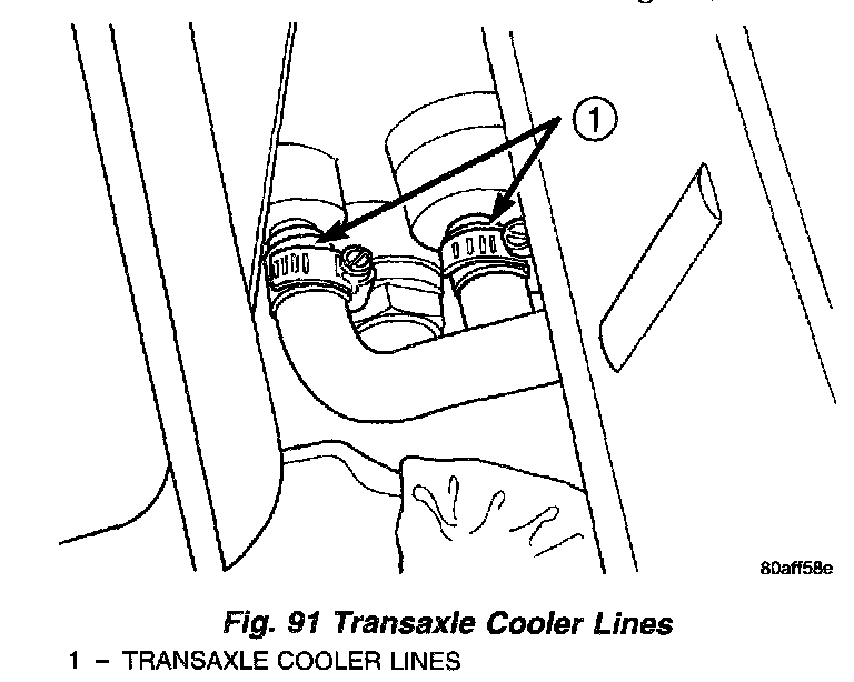 6. Remove transaxle cooler lines (Fig. 91).