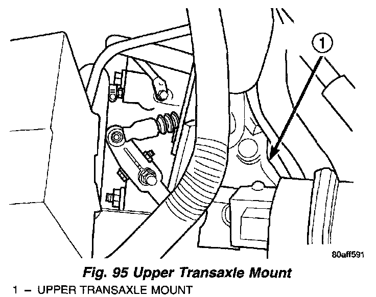 9. Remove left upper transaxle mount top bolts (Fig. 95).