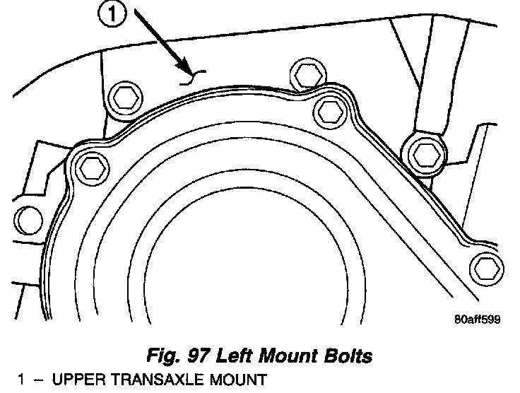 13. Remove remaining left upper mount bolts (Fig. 97).