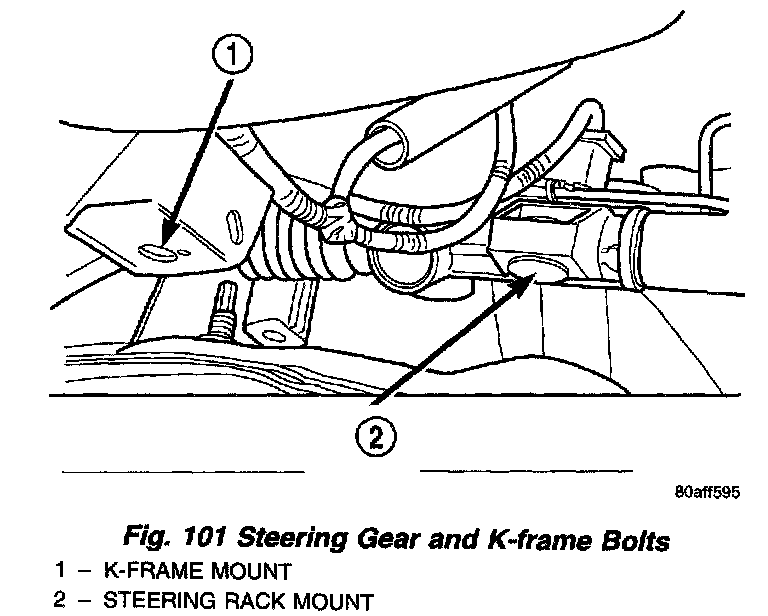 27. Remove left side steering gear bolts. Remove left side K-frame bolts (Fig. 101).