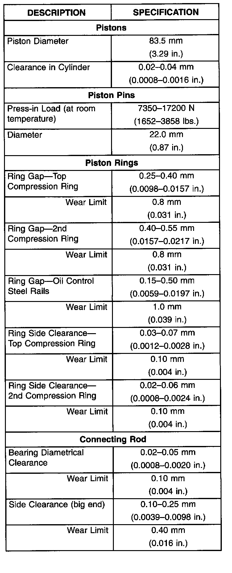Engine Specifications
