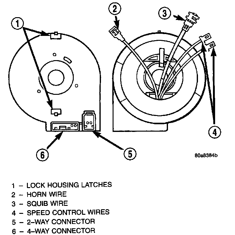 5. Disconnect the horn wire from the airbag module mounting bracket. Remove the speed control wires from under the bracket and from the wire guides.