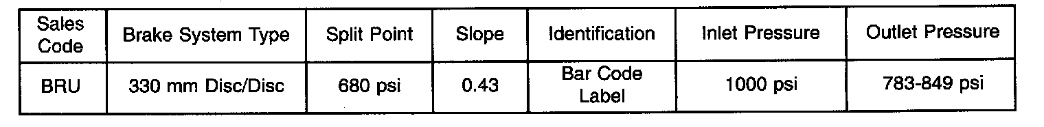 PROPORTIONING VALVE PRESSURE SPECIFICATIONS