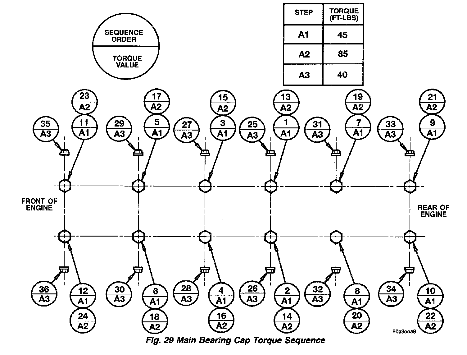 (11) Step A2 Tighten the A2 bolts to 115 Nm (85 ft. lbs.) in the sequence order shown in (Fig. 29).
