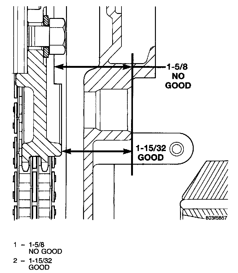 5. Attach a socket to the vibration damper mounting bolt and rotate engine until the 1-15/32 inch dimension is attained.