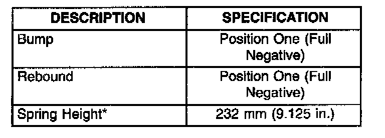 * Distance between upper and lower spring seats with shock assembly in fully extended (rebound) position. There may be some free play between the spring and it's seats.