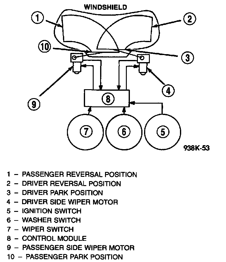 For the module to control the operation of two motors, it must sense the position of the wiper blades. The position is sensed by two switches built into each wiper motor that indicate when the motor is in the reversal, or park positions. After determining the switch positions, the module uses a motor speed signal to synchronize the wiper operation.