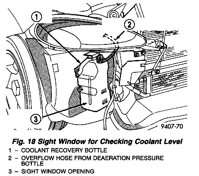 With the engine cold, the coolant level in the coolant pressure bottle should be above the top seam of bottle.