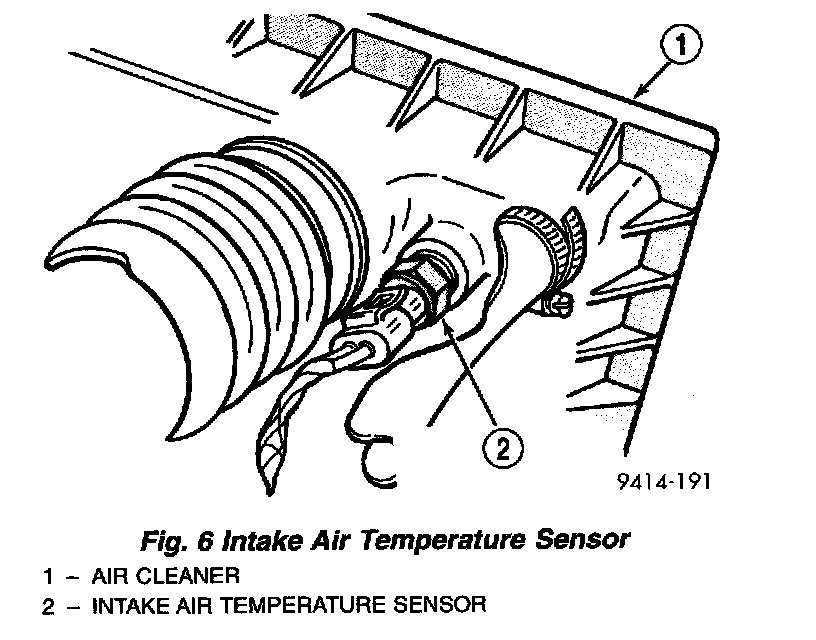 The Intake Air Temperature Sensor threads into the air cleaner. The sensor measures air temperature.