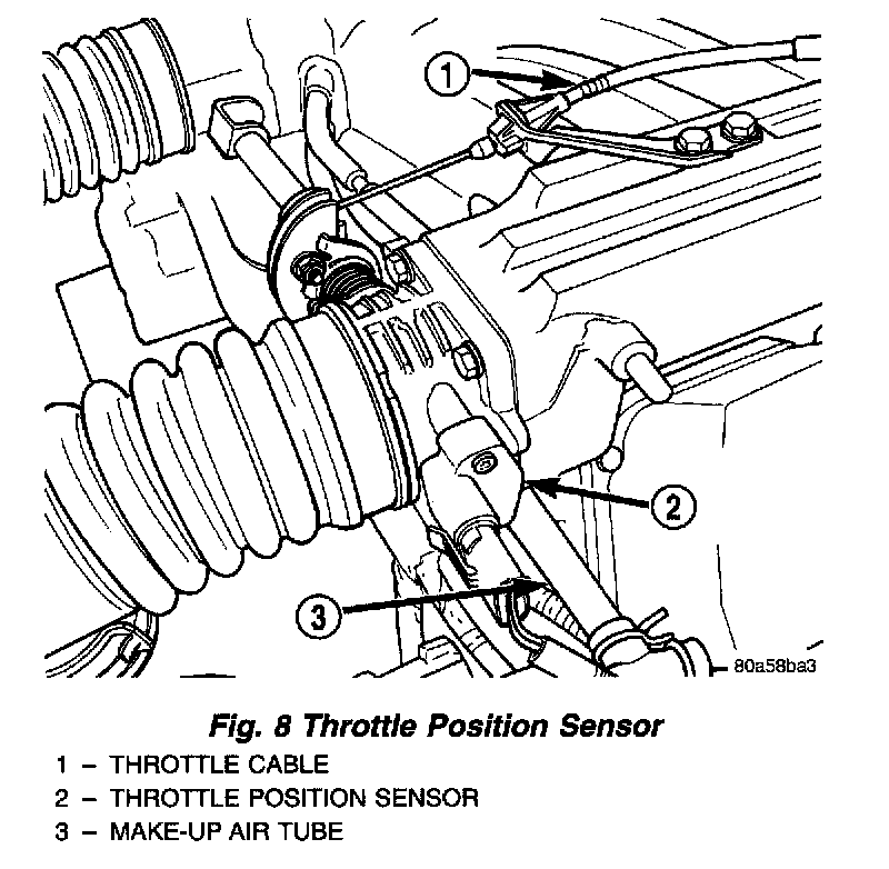 The TPS is mounted on the drivers side throttle body. The sensor connects to the throttle blade shaft. The TPS is a variable resistor that provides the Powertrain Control Module (PCM) with an input signal (voltage).