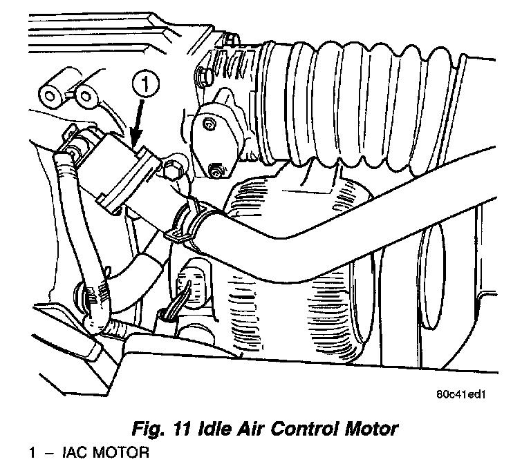 The motor controls air flow through a passage connected to both intake manifold plenums. The PCM operates the idle air control motor. The PCM adjusts engine idle speed through the idle air control motor to compensate for engine load or ambient conditions.