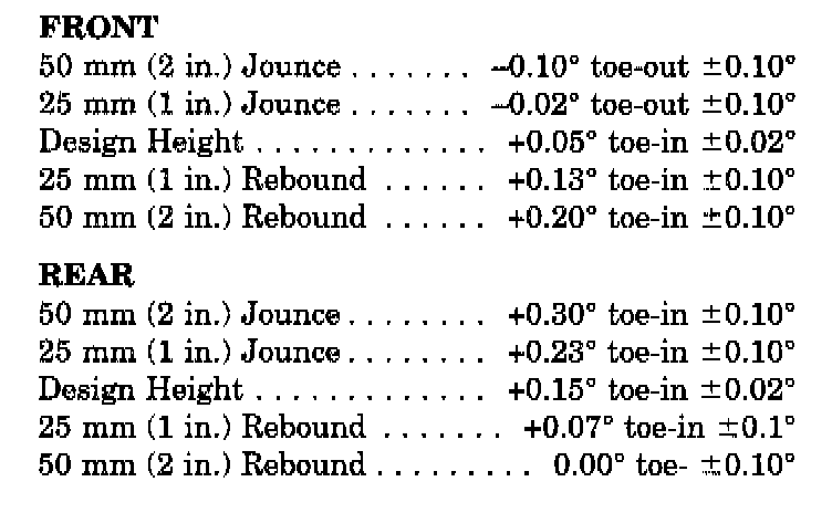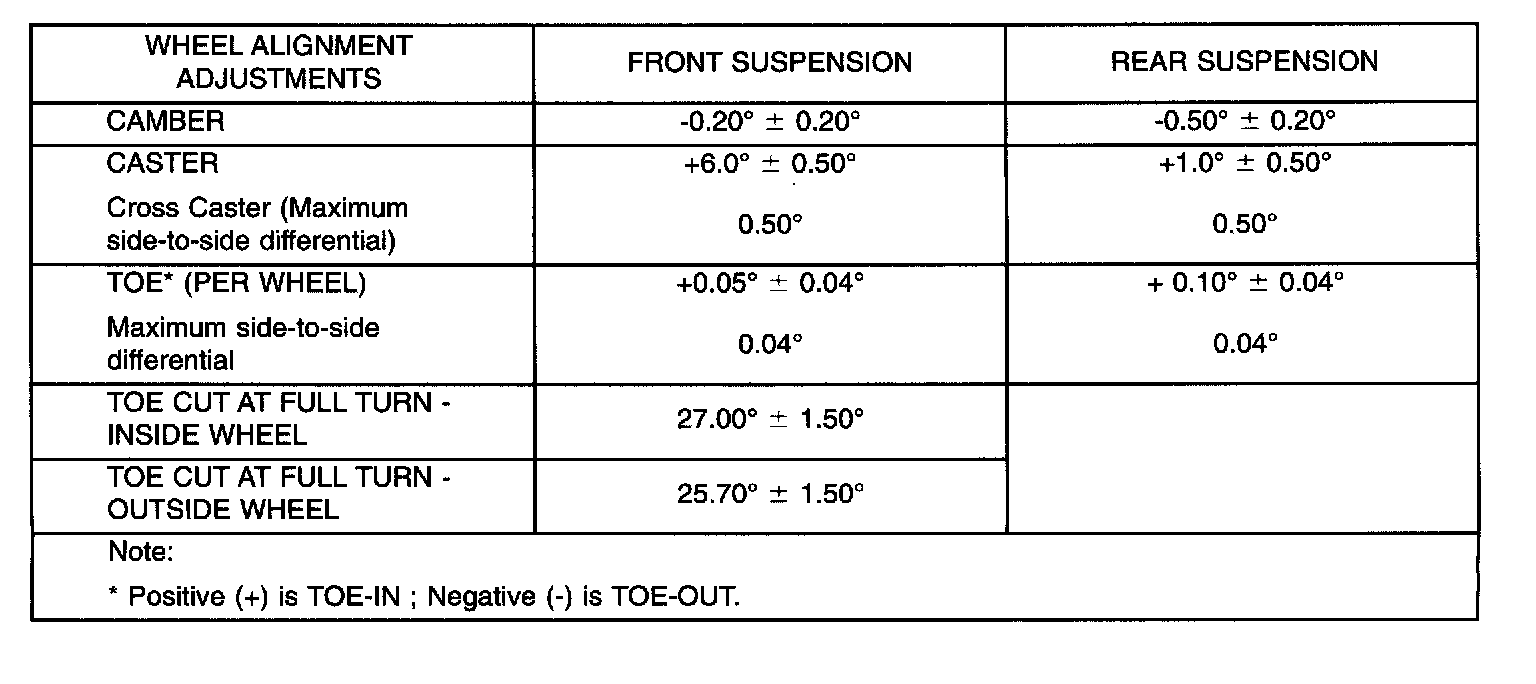 All wheel alignments are to be set with the vehicle at its proper curb height. Refer to the CURB HEIGHT for details.