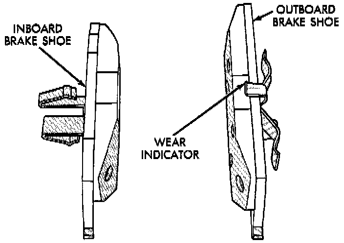 NOTE: The inboard and outboard brake shoes are not common, refer tofigure for inboard and outboard brake shoe assembly identification.