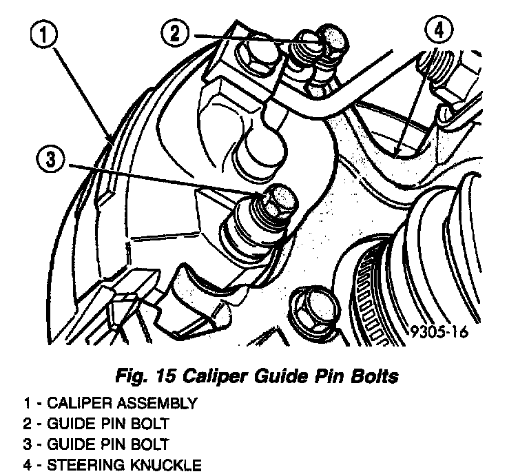 CAUTION: When being installed, extreme caution should be taken not to cross thread the caliper guide pin bolts.