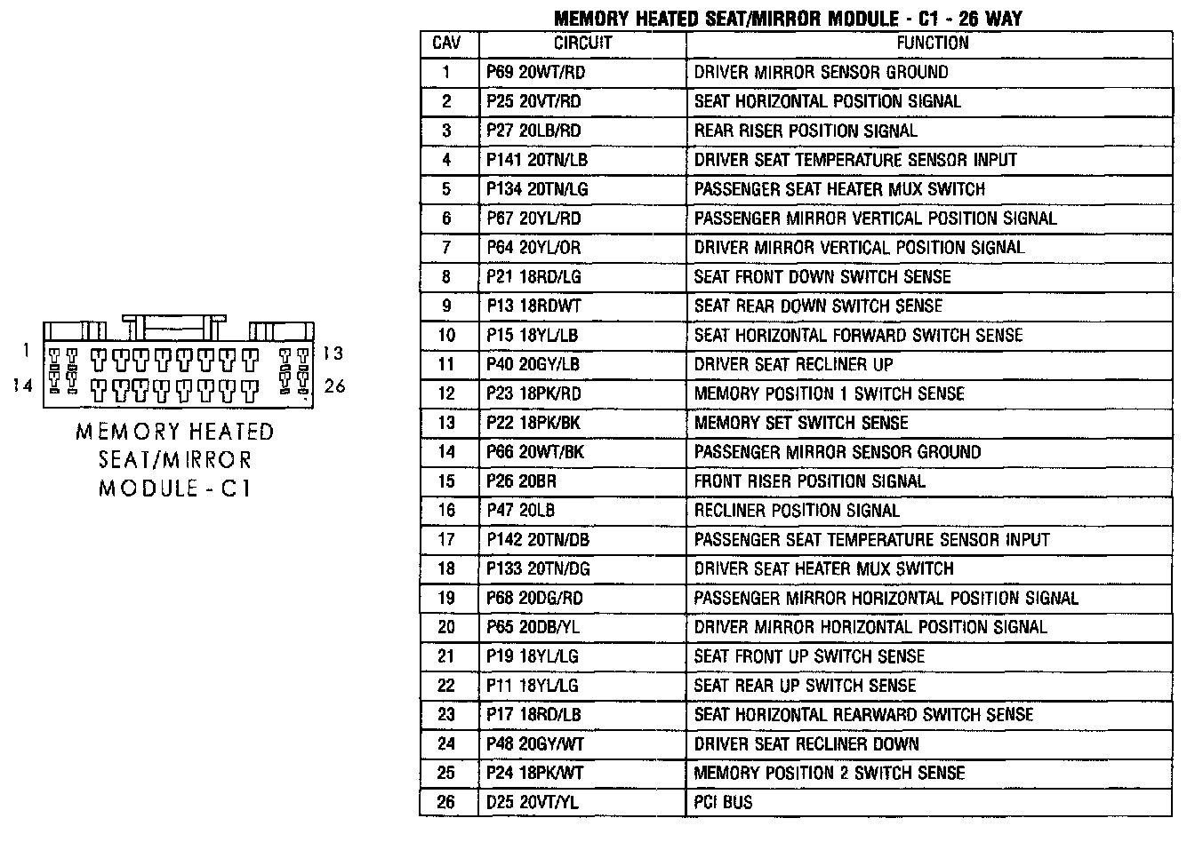 Memory Heated Seat/Mirror Module - C1:
