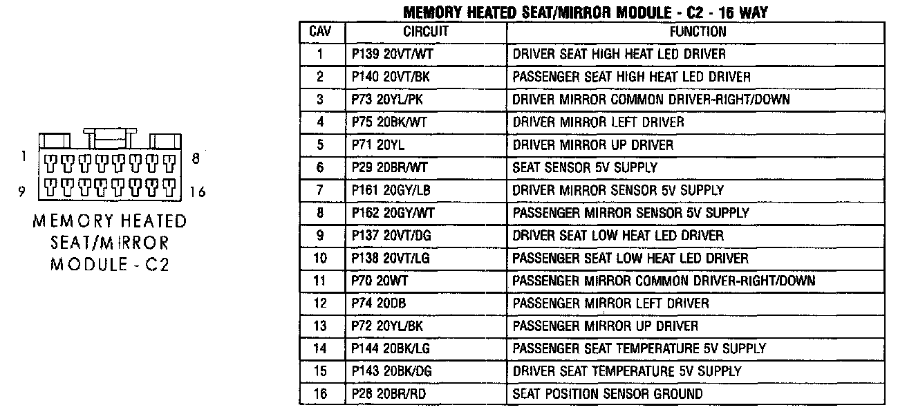 Memory Heated Seat/Mirror Module - C2: