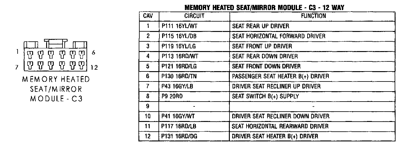 Memory Heated Seat/Mirror Module - C3: