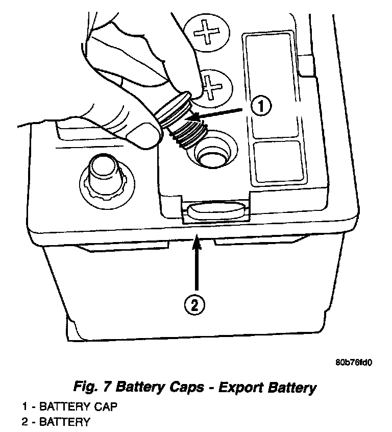 The following procedure can be used to check the electrolyte level in the battery.Fig.7 Battery Caps - Export Battery: