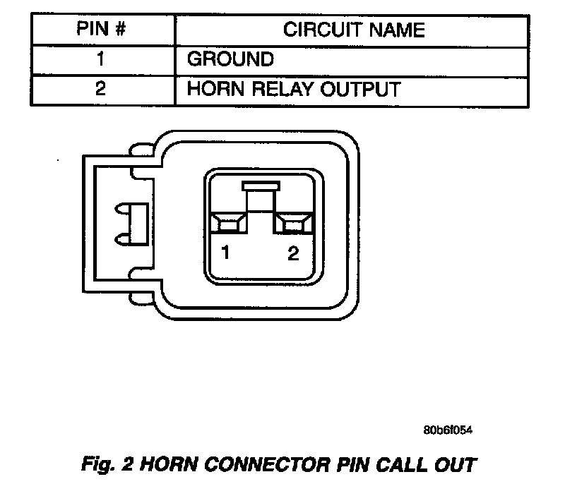 1. Disconnect wire connector at each horn.Fig.2 Horn Connector Pin Call Out: