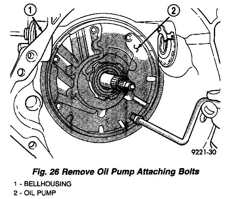 (14) Remove oil pump-to-case bolts (Fig. 26).