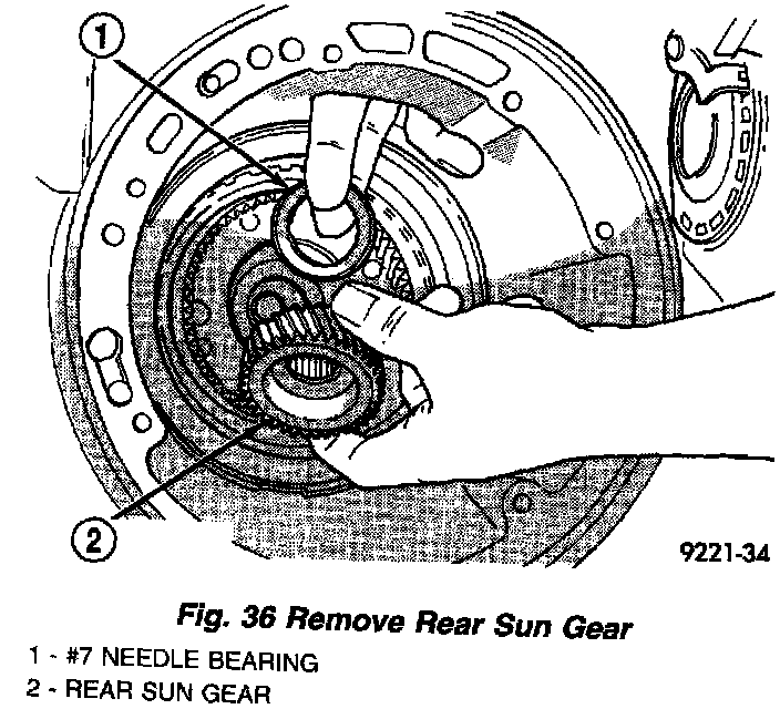 (24) Remove rear sun gear and # 7 needle bearing (Fig. 36) (Fig. 37).