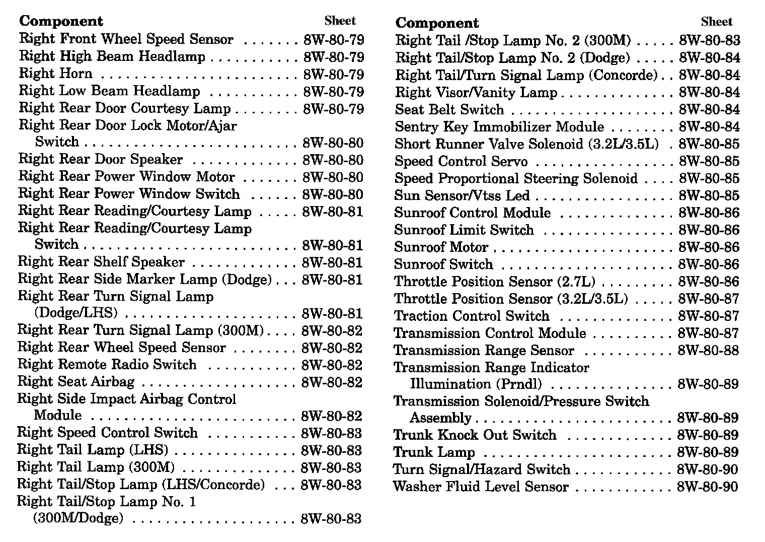 Connector Pin-Outs Component Index (Part 4 Of 4):