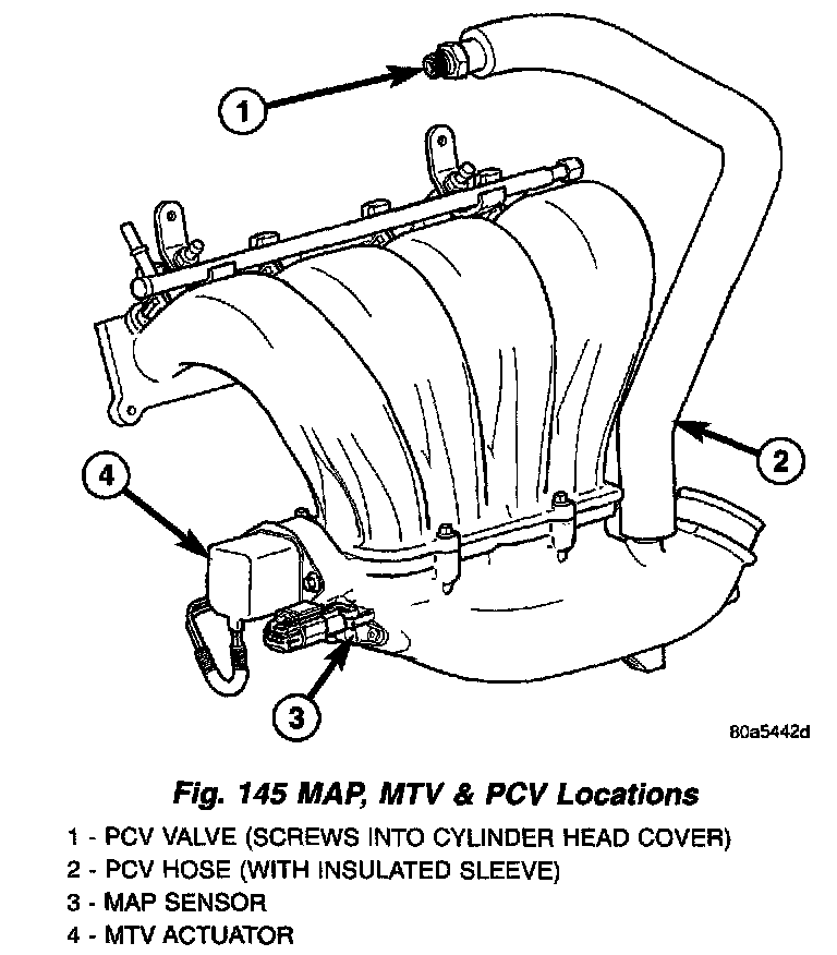 10. Disconnect electrical connectors from MAP sensor and MTV actuator (Fig. 145).