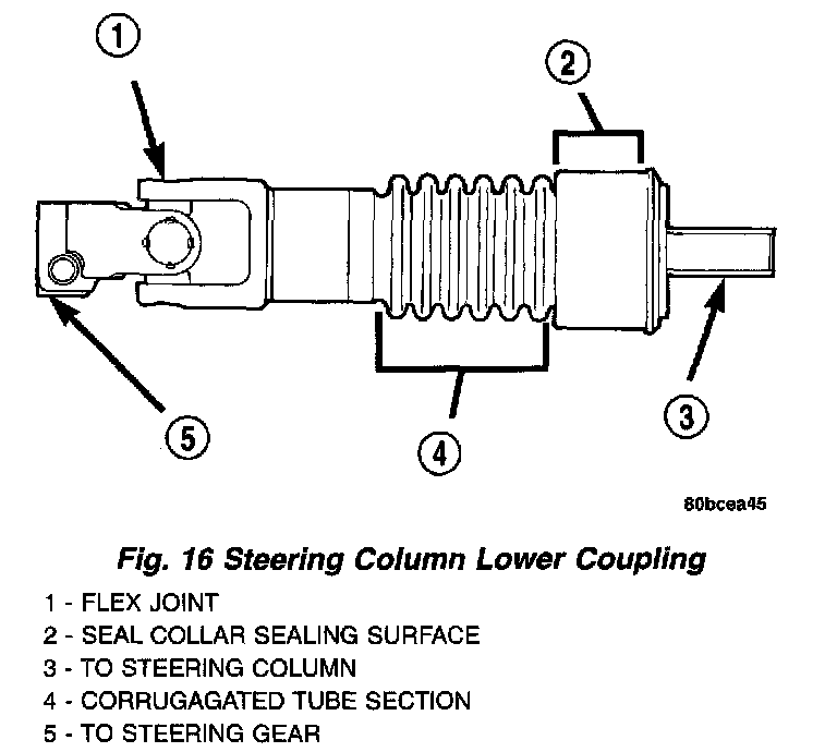 DIAGNOSIS AND TESTING - STEERING COLUMN LOWER COUPLINGThe steering column coupling must be inspected whenever a vehicle is involved in an impact or whenever any of the following conditions exist: