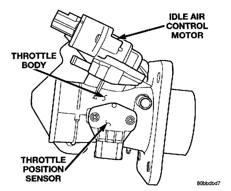 The throttle position sensor mounts to the side of the throttle body.