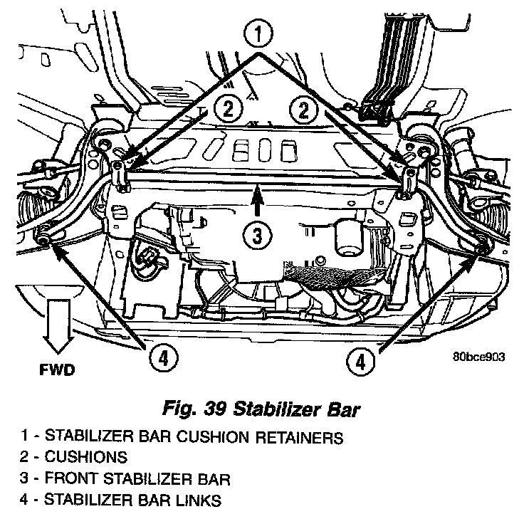 NOTE: Before stabilizer bar installation, inspect the cushions and links for excessive wear, cracks, damage and distortion. Replace any pieces failing inspection.