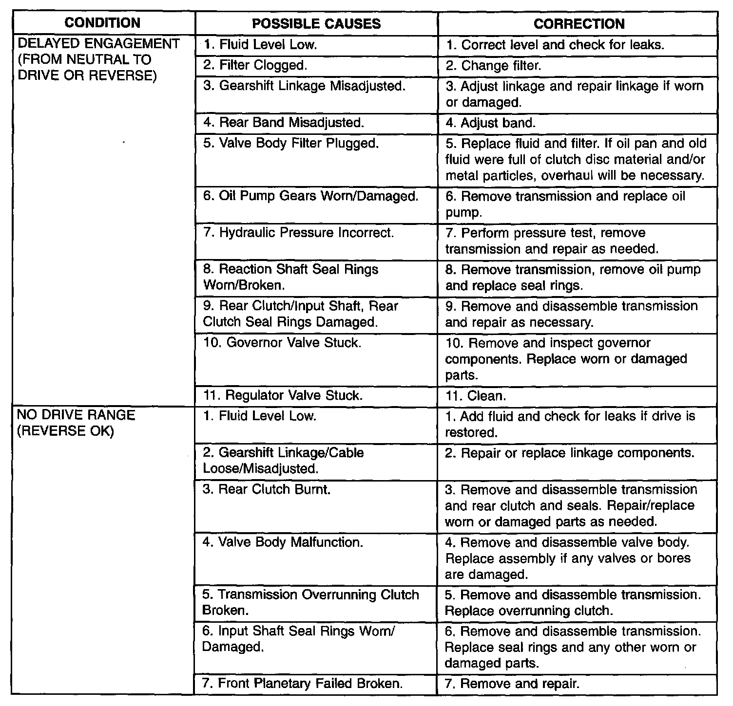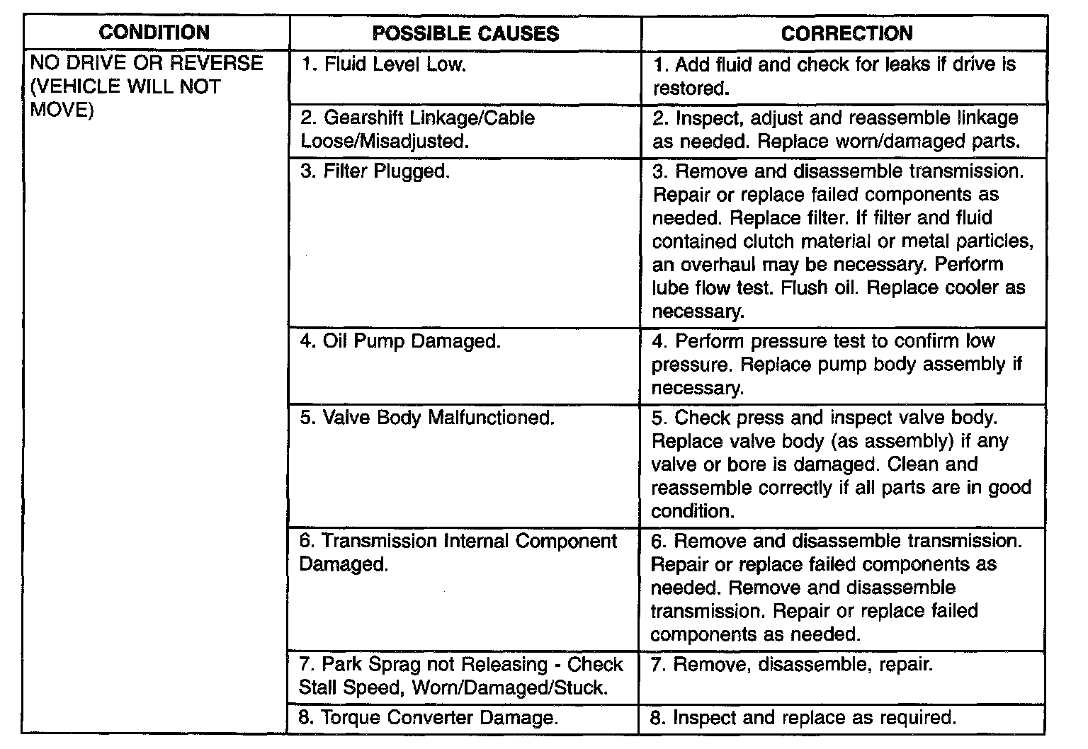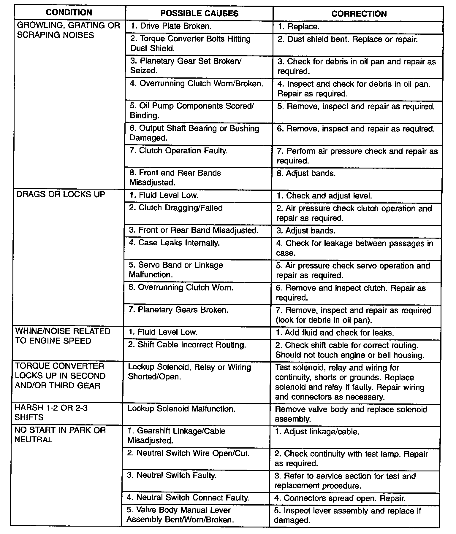 TRANSAXLE DIAGNOSIS CHARTS Part 2 of 8